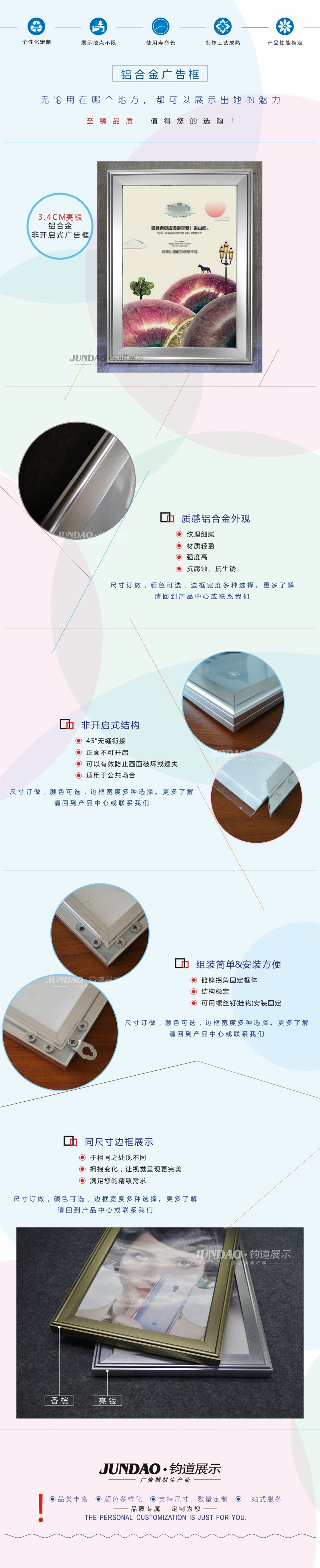 钧道3.4CM亮银色非开启广告框 传媒广告框 电梯广