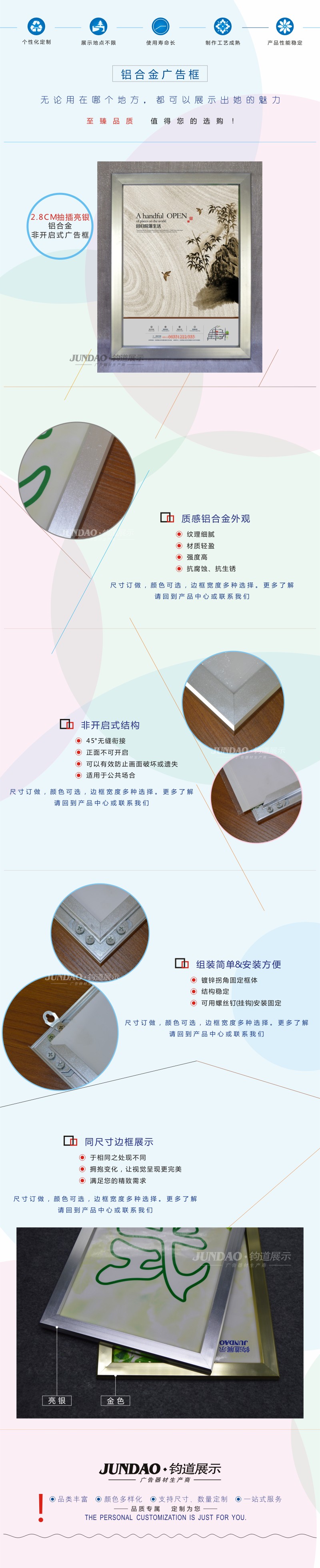 2.8CM亮银抽插式非开启式广告框/广告展板/广告框