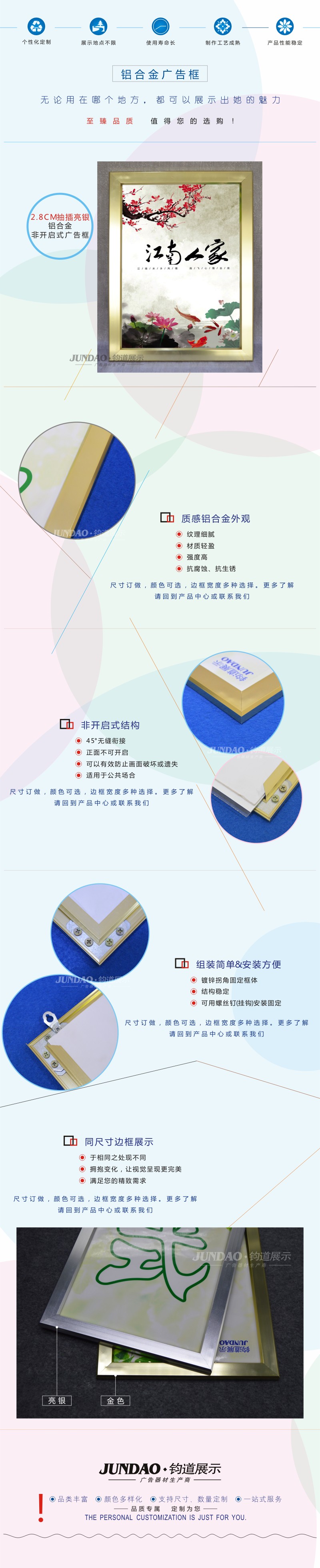 钧道2.8CM金色抽插式非开启式广告框/广告展板画