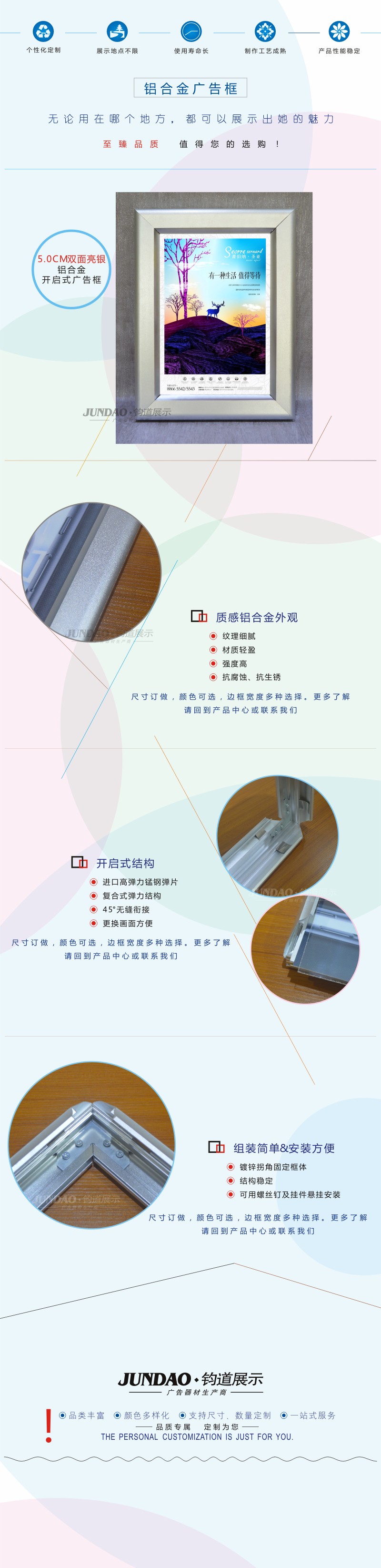 钧道5CM双面亮银 铝合金相框海报框 电梯广告框
