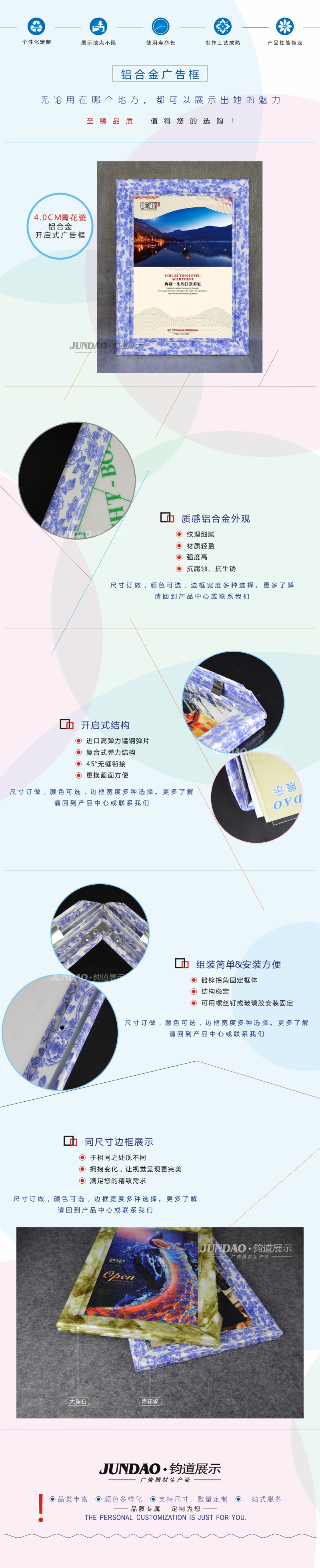 4.0CM新款青花瓷开启式广告展示框/广告铝框