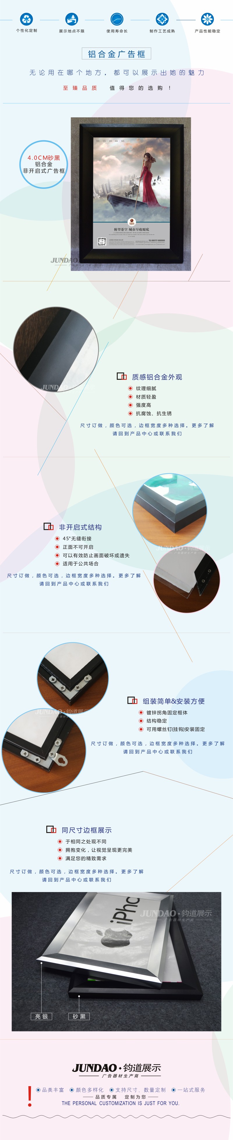 4CM砂黑非开启式广告框电梯广告框相框海报框