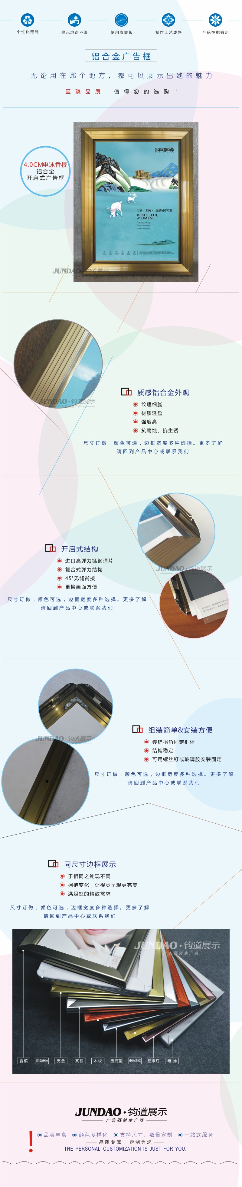 4.0CM圆角电泳香槟色开启式广告铝框/定做广告展