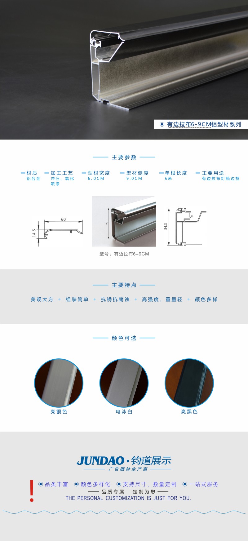 6-9CM亮黑色有边拉布灯箱型材