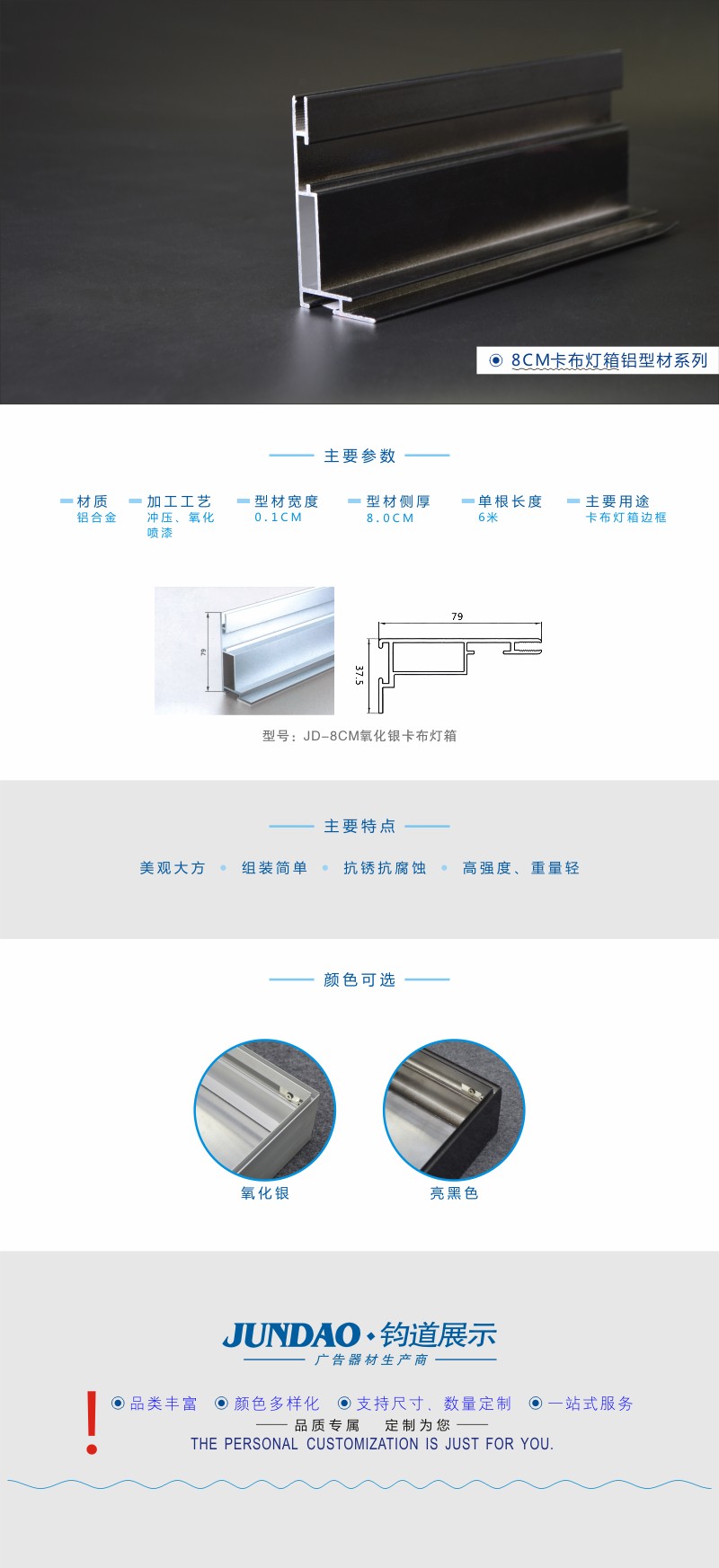 8CM亮黑色卡布灯箱型材/广告灯箱型材