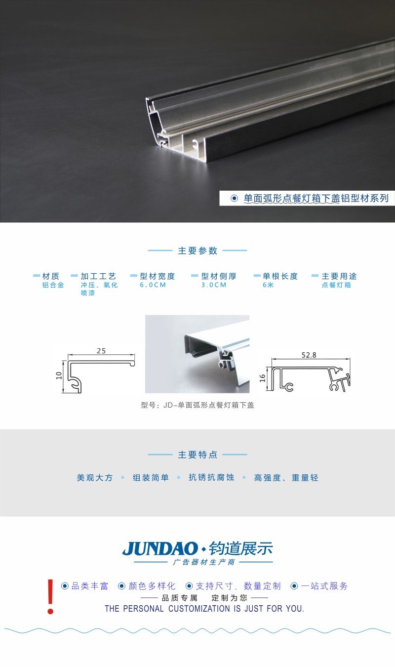 JD单面弧形点餐灯箱下盖/点餐灯箱型材
