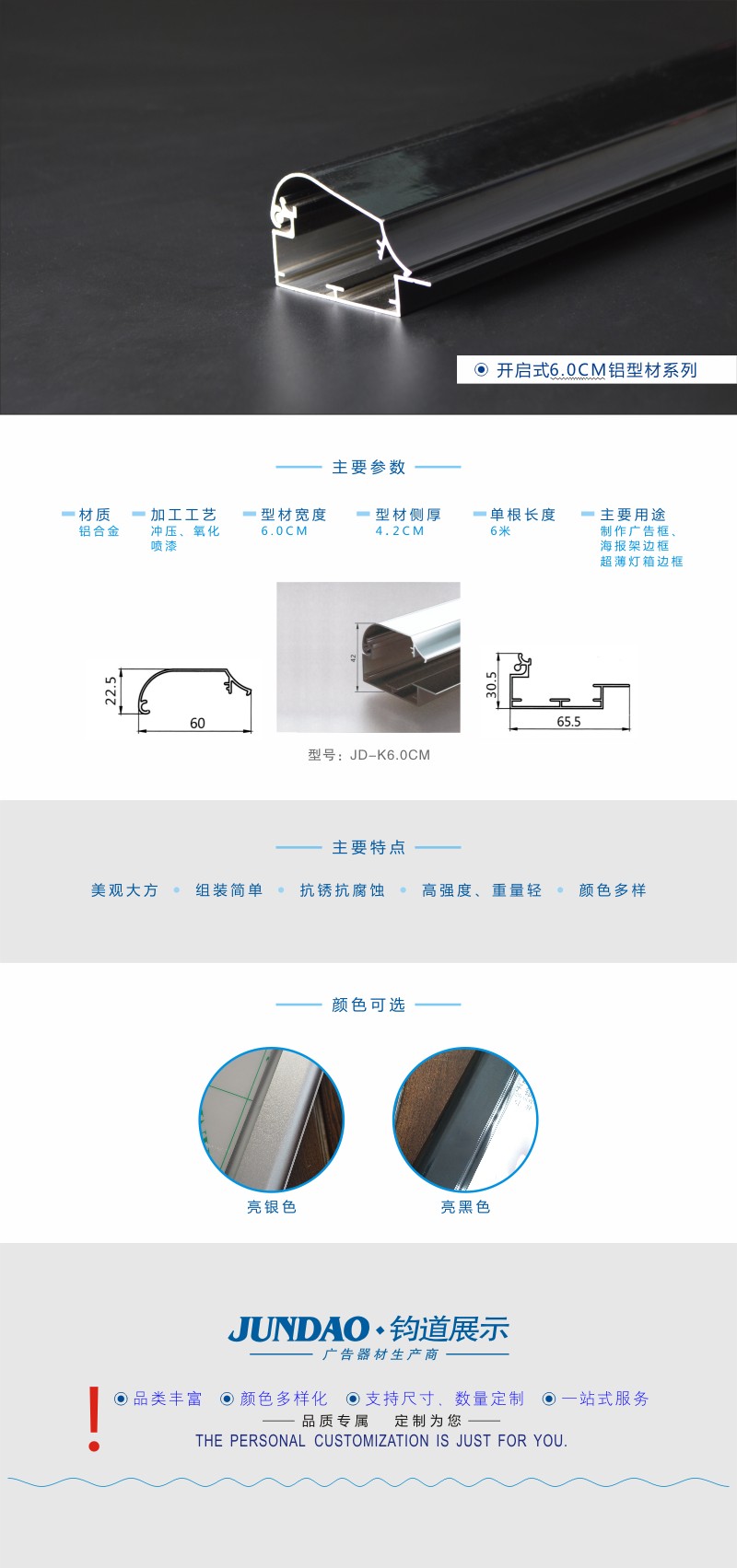 6.0CM亮黑色广告框型材/广告铝型材加工