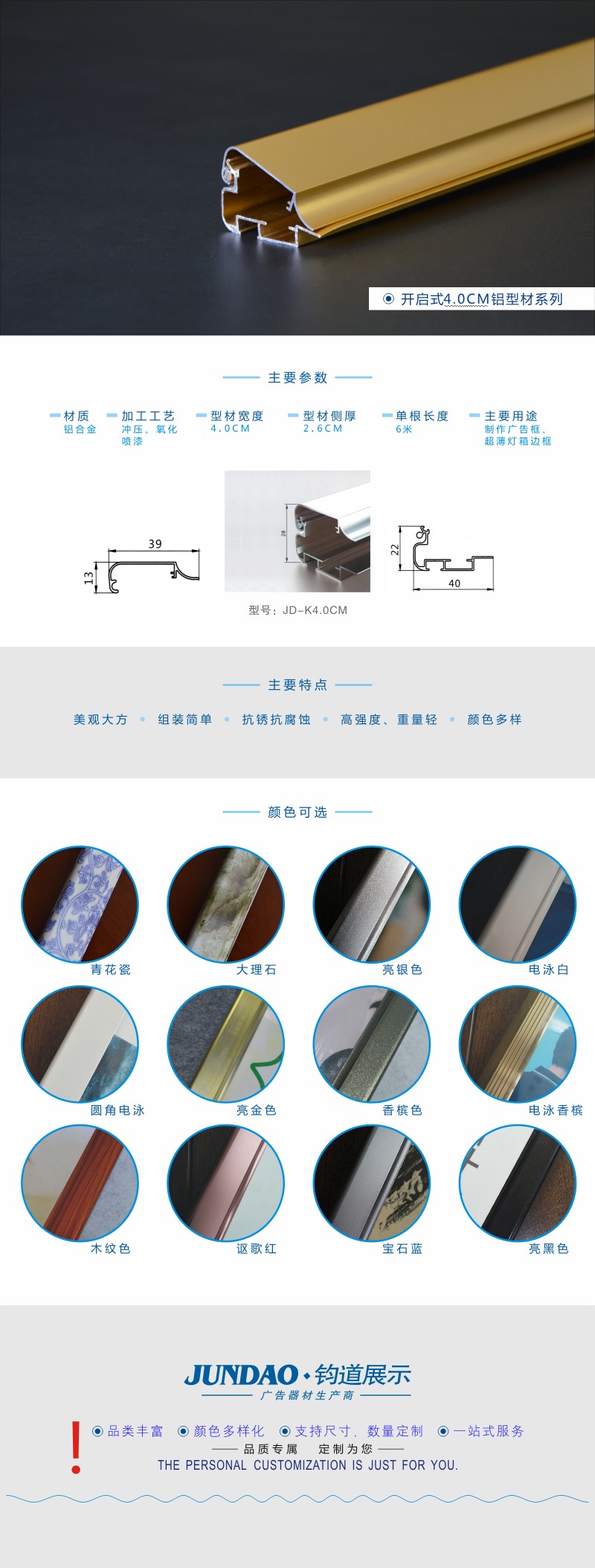 4.0CM砂金广告框型材/加工广告铝型材