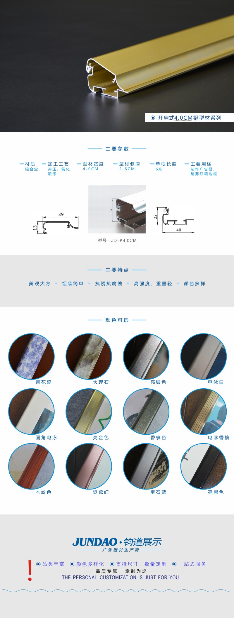 4.0CM亮金色广告型材框/开启式铝型材