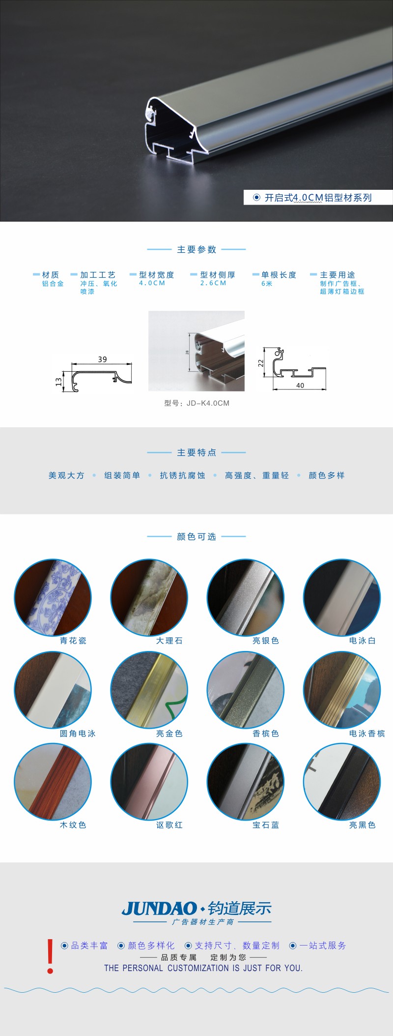 4.0CM宝石蓝开启式广告框型材/铝合金框型材加工