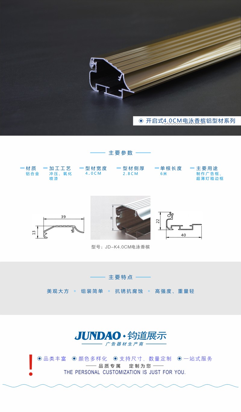 JD-4.0CM电泳香槟铝型材/广告边框型材