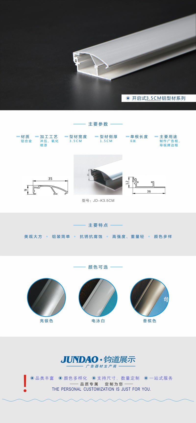 3.5CM电泳白广告型材/铝合金广告型材框