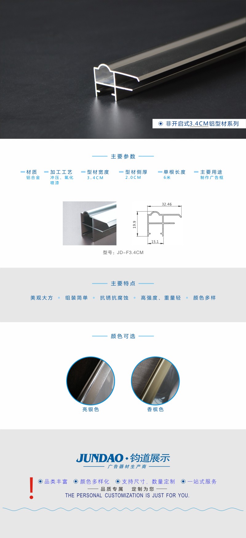 3.4CM香槟色非开启广告框型材/广告展板型材