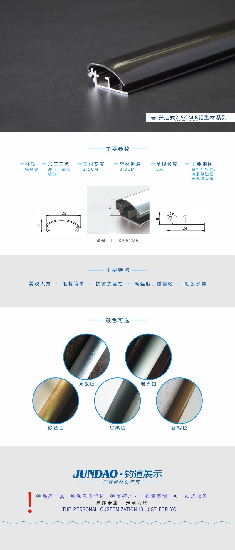 2.5BCM亮黑色广告型材/铝合金广告型材