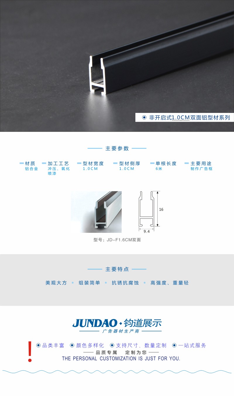 1.6CM非开启双面砂黑色广告铝型材