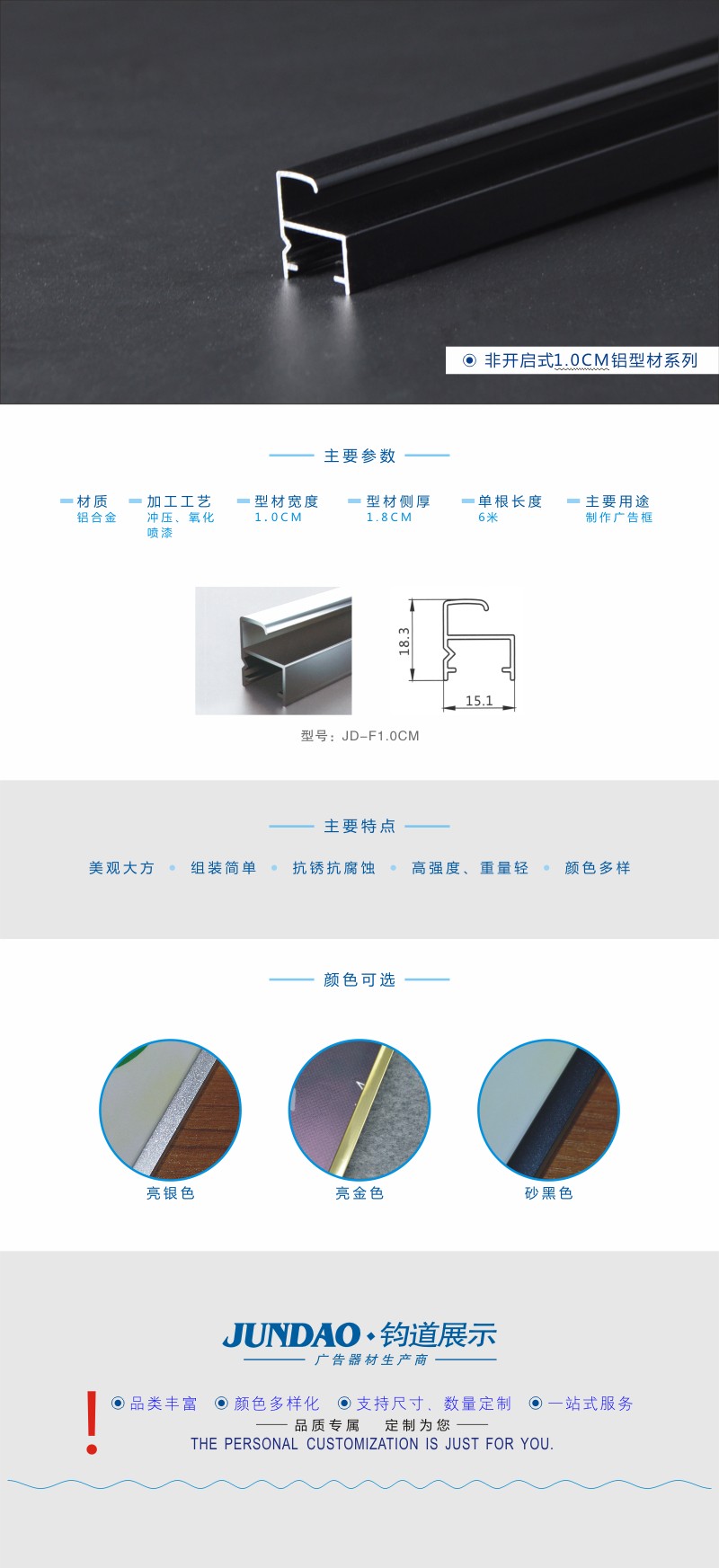 1.0CM砂黑色非开启广告框型材/广告展板框型材