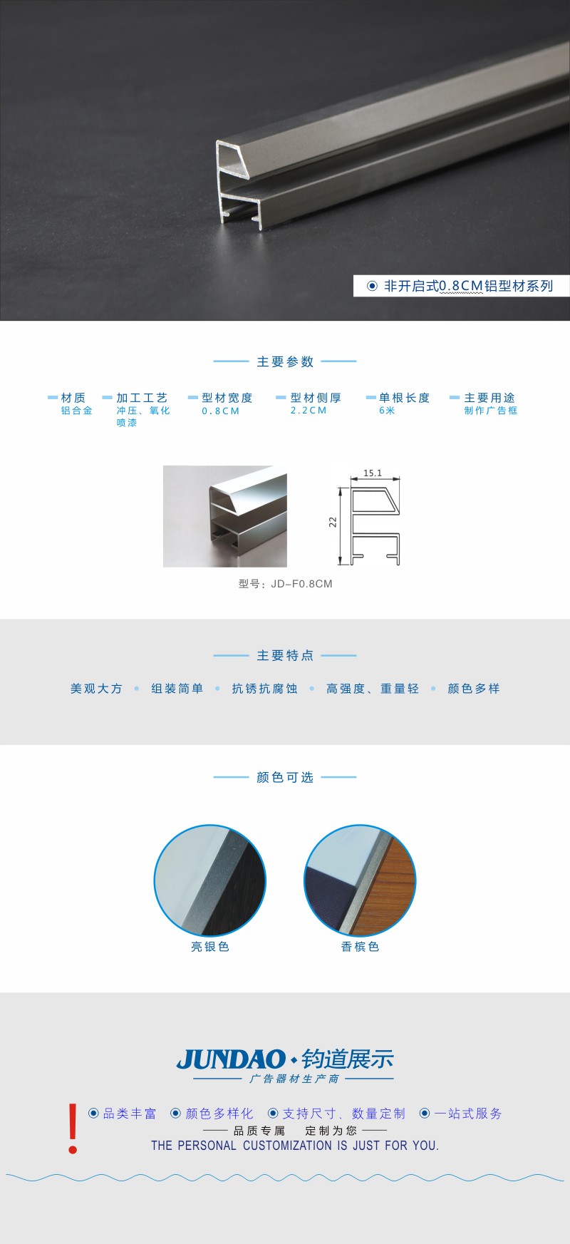 0.8CM香槟色非开启式广告框型材/相框型材