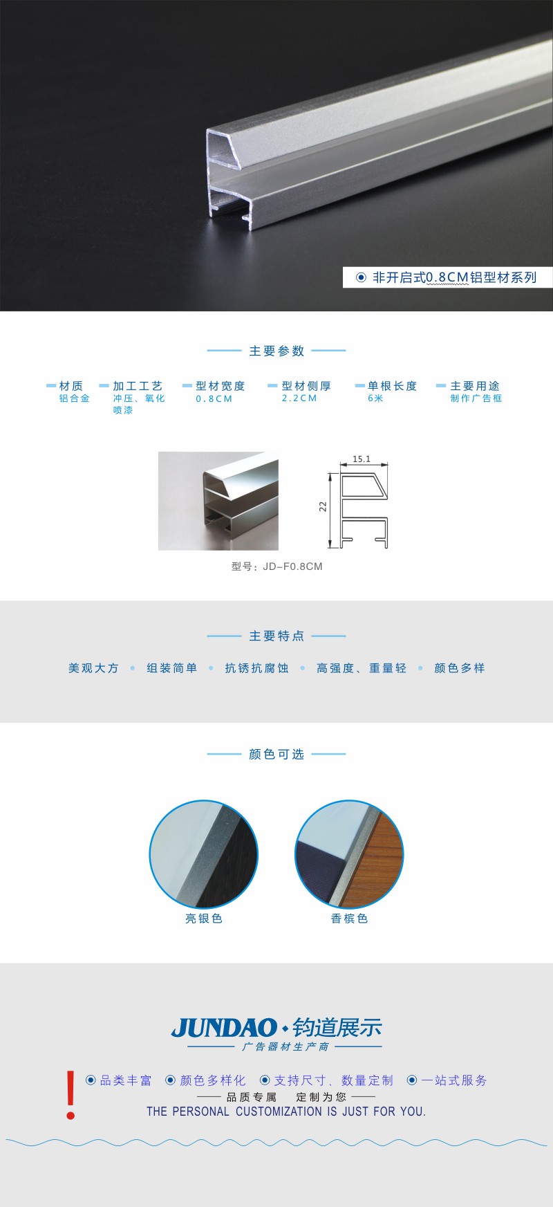 JD-0.8CM非开启边框型材/广告型材加工