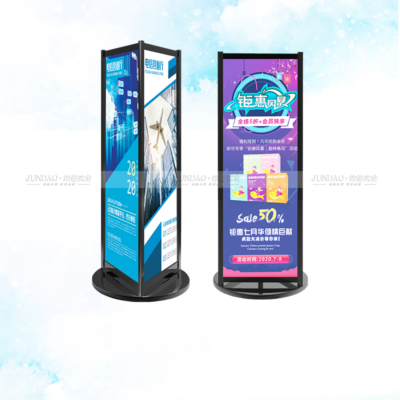 河南钧道实业有限公司主营:铝合金户外带雨棚宣传栏、垃圾分类亭、挂墙报栏、移动展架、广告铝框、可折叠海报架、灯杆道旗、带造型灯杆灯箱、标识牌、花草牌等成品。