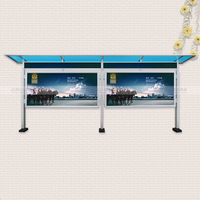 河南钧道实业有限公司主营:铝合金户外带雨棚宣传栏、垃圾分类亭、挂墙报栏、移动展架、广告铝框、可折叠海报架、灯杆道旗、带造型灯杆灯箱、标识牌、花草牌等成品。