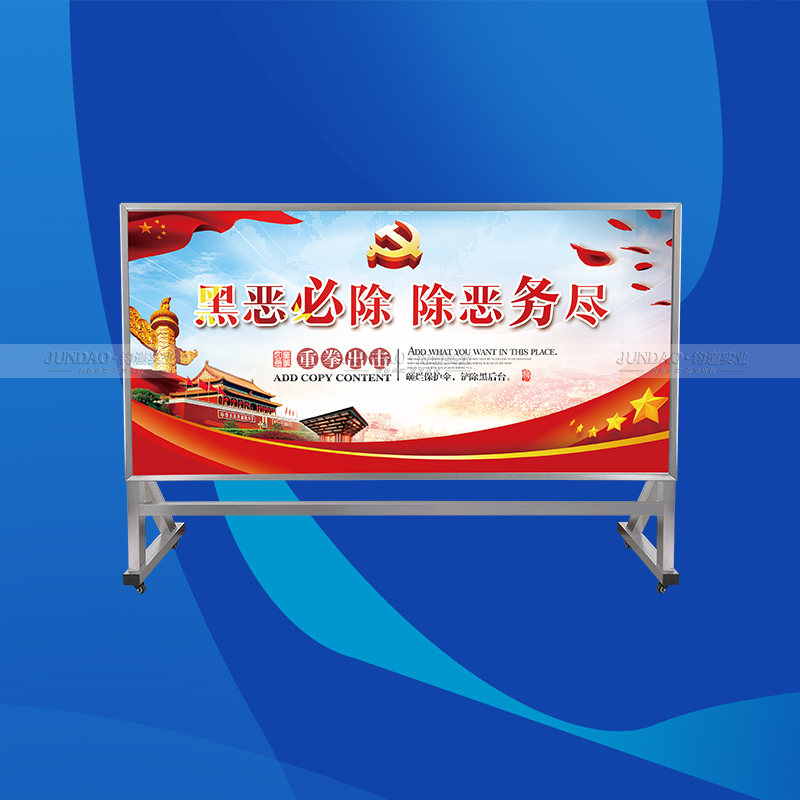 河南钧道实业有限公司主营:铝合金户外带雨棚宣传栏、垃圾分类亭、挂墙报栏、移动展架、广告铝框、可折叠海报架、灯杆道旗、带造型灯杆灯箱、标识牌、花草牌等成品。