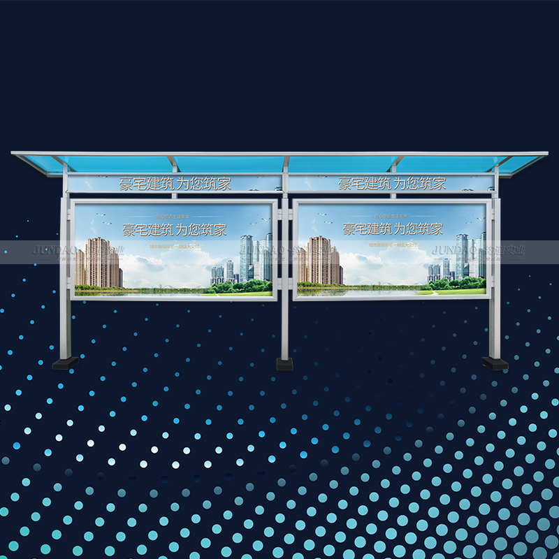河南钧道实业有限公司主营:铝合金户外带雨棚宣传栏、垃圾分类亭、挂墙报栏、移动展架、广告铝框、可折叠海报架、灯杆道旗、带造型灯杆灯箱、标识牌、花草牌等成品。