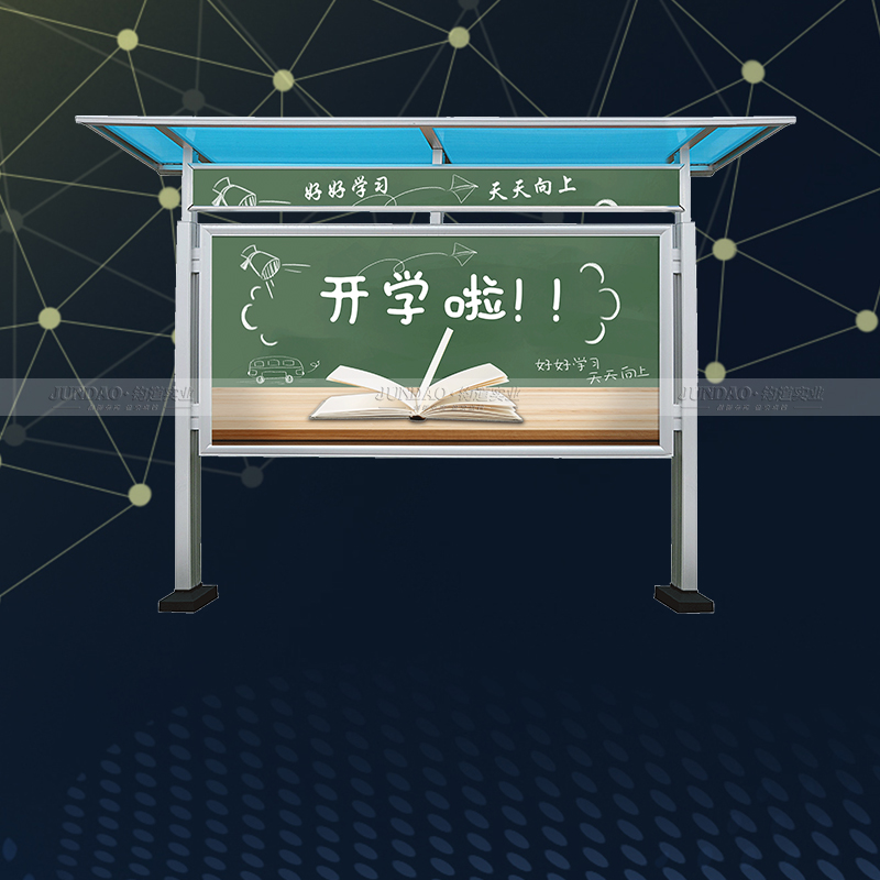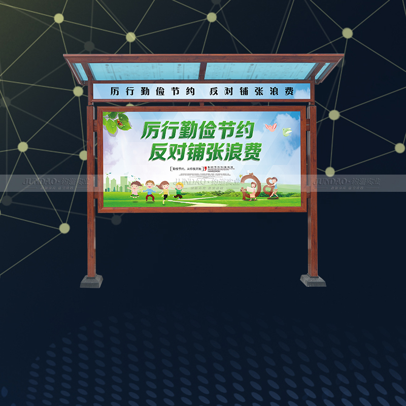 河南钧道实业有限公司主营:铝合金户外带雨棚宣传栏、垃圾分类亭、挂墙报栏、移动展架、广告铝框、可折叠海报架、灯杆道旗、带造型灯杆灯箱、标识牌、花草牌等成品。
