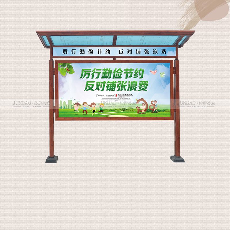 河南钧道实业有限公司主营:铝合金户外带雨棚宣传栏、垃圾分类亭、挂墙报栏、移动展架、广告铝框、可折叠海报架、灯杆道旗、带造型灯杆灯箱、标识牌、花草牌等成品。