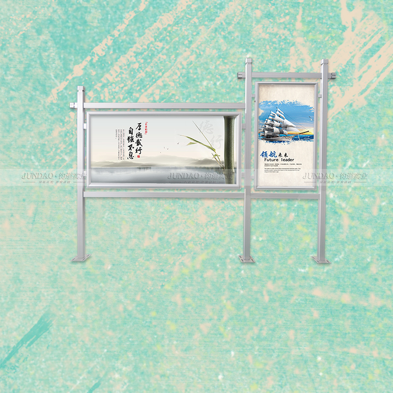 其次,还要看宣传栏安装的地点不同的地点所需要的宣传栏设计方案不同。如果安装在户外,需要考虑宣传栏的制作材料、宣传栏结构,还要考虑雨雪天气腐蚀,外部风沙影响等。一般采用玻璃顶棚,通过镀锌板、铝合金外部框架与玻璃之间的搭配,能够防止宣传栏受到恶劣天气影响。如果是室内悬挂,则需要考虑室内布置位置,还要考虑宣传栏所涉及的内容。针对内部管理信息的宣传,可以采取墙面框架悬挂的模式,还可以采取X展架摆放的模式,针对相关政策的宣传,可以采取木制模式塑造创意形状,来提升单位整体形象。