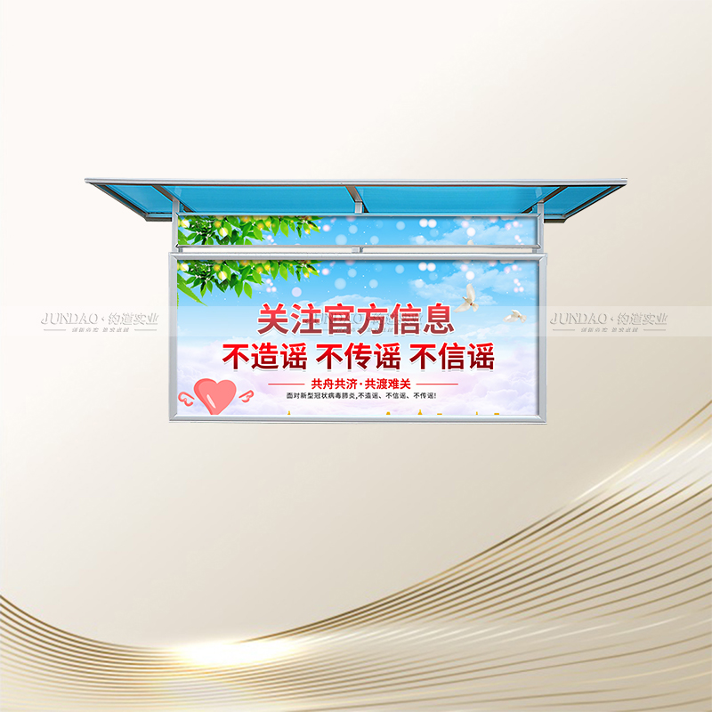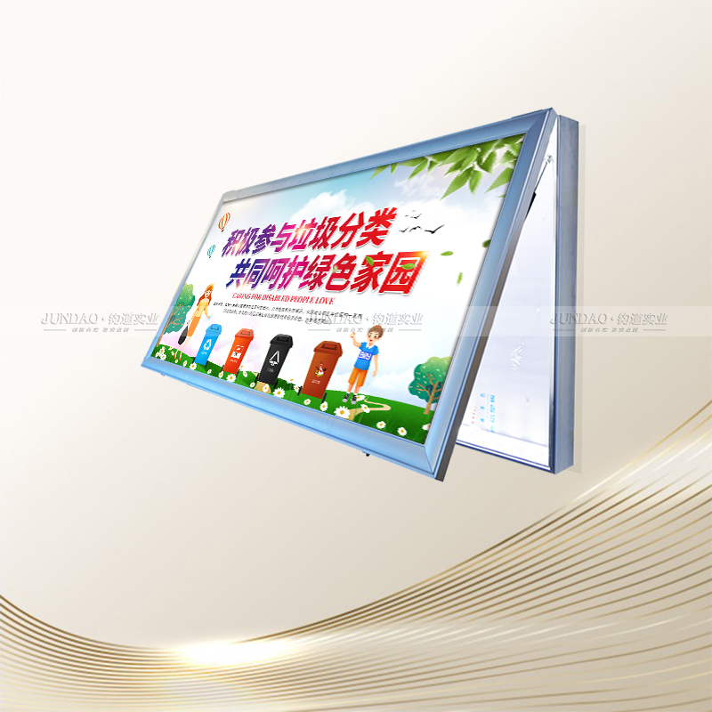 河南钧道实业有限公司主营:铝合金户外带雨棚宣传栏、垃圾分类亭、挂墙报栏、移动展架、广告铝框、可折叠海报架、灯杆道旗、带造型灯杆灯箱、标识牌、花草牌等成品。