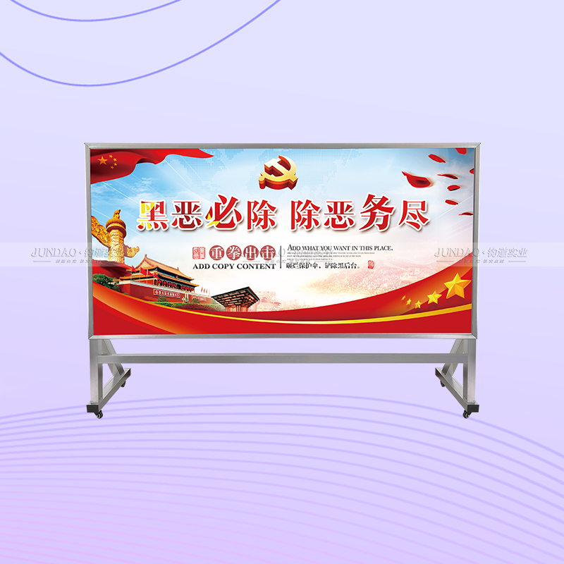 河南钧道实业有限公司主营:铝合金户外带雨棚宣传栏、垃圾分类亭、挂墙报栏、移动展架、广告铝框、可折叠海报架、灯杆道旗、带造型灯杆灯箱、标识牌、花草牌等成品。