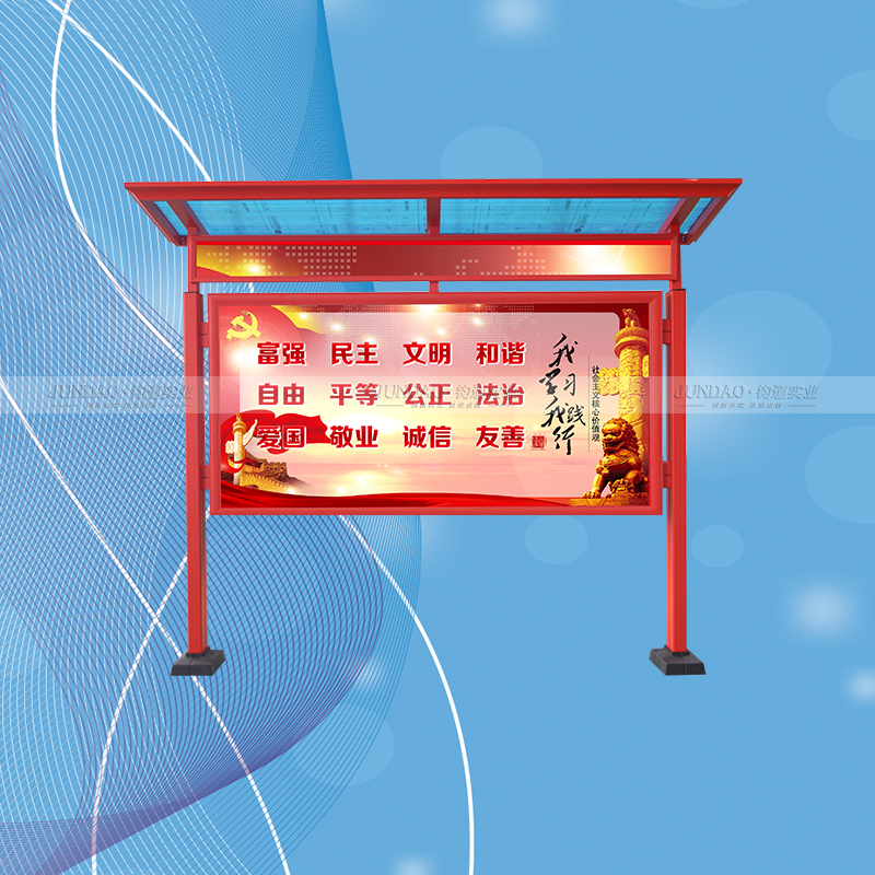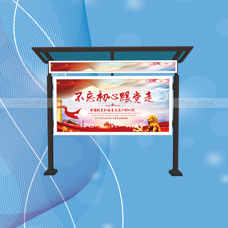 河南钧道实业有限公司主营:铝合金户外带雨棚宣传栏、垃圾分类亭、挂墙报栏、移动展架、广告铝框、可折叠海报架、灯杆道旗、带造型灯杆灯箱、标识牌、花草牌等成品。