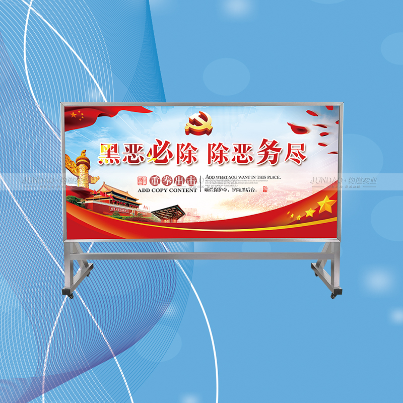 河南钧道实业有限公司主营:铝合金户外带雨棚宣传栏、垃圾分类亭、挂墙报栏、移动展架、广告铝框、可折叠海报架、灯杆道旗、带造型灯杆灯箱、标识牌、花草牌等成品。