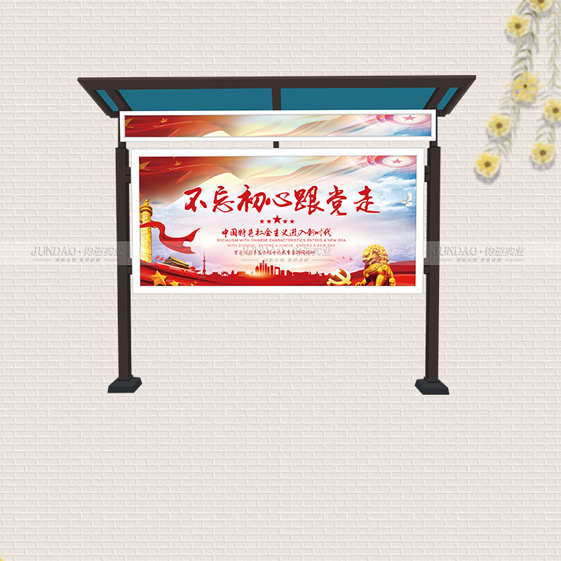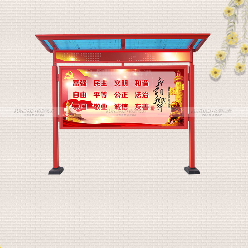 河南钧道实业有限公司主营:铝合金户外带雨棚宣传栏、垃圾分类亭、挂墙报栏、移动展架、广告铝框、可折叠海报架、灯杆道旗、带造型灯杆灯箱、标识牌、花草牌等成品。