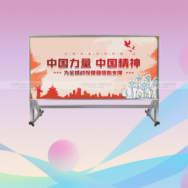 移动报栏宣传栏的优势是由其移动的便利性决定的,而且移动报栏的设计还是属于城市建设景观设施这一领域内的,移动报栏下端的支架上是有一个与支架相连接滑轮转动链接的;并且在移动报栏的支架上还设有与其同一定位销配合的孔槽。钧道新设计研发的移动报栏结构合理、便于移动、符合人体力学设计,十分适合于城建需求及商家的宣传促销。