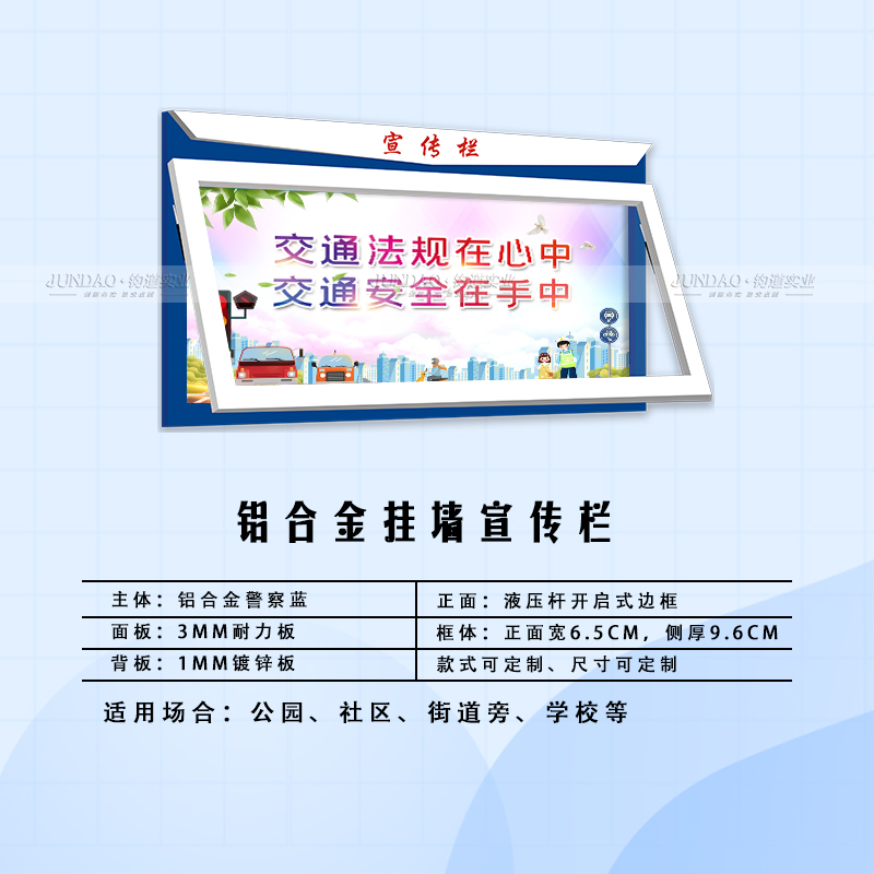 河南钧道实业有限公司主营:铝合金户外带雨棚宣传栏、垃圾分类亭、挂墙报栏、移动展架、广告铝框、可折叠海报架、灯杆道旗、带造型灯杆灯箱、标识牌、花草牌等成品。