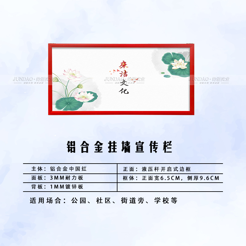 河南钧道实业有限公司主营:铝合金户外带雨棚宣传栏、垃圾分类亭、挂墙报栏、移动展架、广告铝框、可折叠海报架、灯杆道旗、带造型灯杆灯箱、标识牌、花草牌等成品。