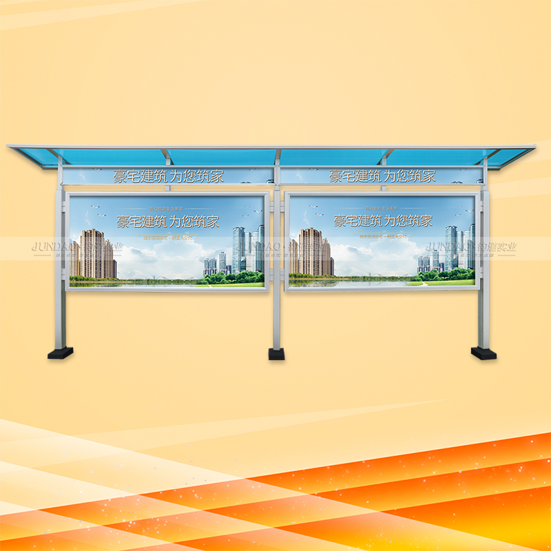 河南钧道实业有限公司主营:铝合金户外带雨棚宣传栏、垃圾分类亭、挂墙报栏、移动展架、广告铝框、可折叠海报架、灯杆道旗、带造型灯杆灯箱、标识牌、花草牌等成品。