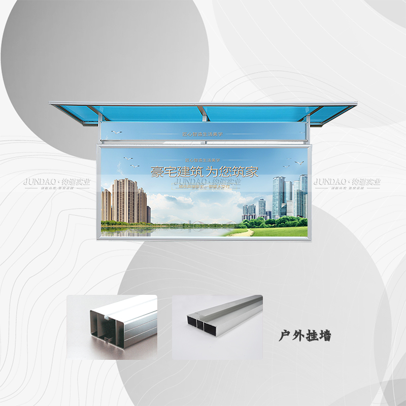 河南钧道实业有限公司主营:铝合金户外带雨棚宣传栏、垃圾分类亭、挂墙报栏、移动展架、广告铝框、可折叠海报架、灯杆道旗、带造型灯杆灯箱、标识牌、花草牌等成品。