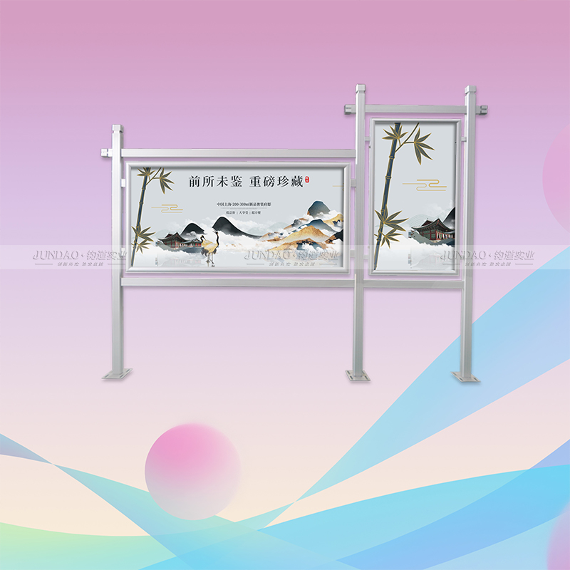 河南钧道实业有限公司主营:铝合金户外带雨棚宣传栏、垃圾分类亭、挂墙报栏、移动展架、广告铝框、可折叠海报架、灯杆道旗、带造型灯杆灯箱、标识牌、花草牌等成品。