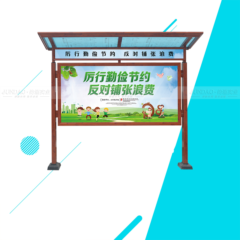 现在是21世纪,宣传栏制造有了突飞猛进的发展,主要有镀锌板、铝合金等材质折弯焊接而成,表面具有超强的抗锈蚀、抗腐蚀能力。郑州钧道广告器材有限公司设计、研发、制作的宣传栏全部采用国标镀锌板和铝合金,厚度都是足1.5mm~2mm。顶棚采用2mm的阳光板,安全性高,显示效果清晰,透光度高。不光材质好,造型也多种多样,有古典的,现代的,时尚的和小清新的,色彩之艳丽,造型之流畅,彻底改变了宣传栏呆板老旧的印象。真正成为了城市美化不可缺少的一道亮丽风景线!