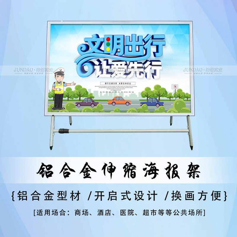 1、稳定性:铝型材海报架的设计结构,符合建筑上力学中的原理.与其它材质相比,具有更高的抗腐性,不会因受潮而变形,不会因阳光照射而萎缩软化,更不会因冰冻和紫外线而变脆。