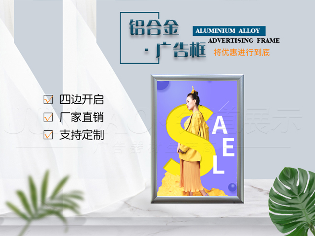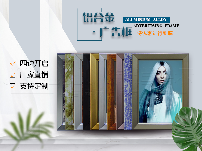 广告边框分为开启式和封闭式,开启式是近年开始流入市场,因四边可开启,组装方便,易于更换画面而被客户熟知,逐渐代替了之前的封闭式边框。不开启式外观精致,不易破损,连接更为紧密,更适用于做制度框等制度宣传,规则通知等无需经常更换的一系列发布展示。