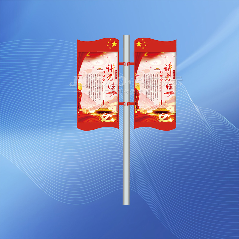灯杆道旗由灯杆道旗画面、灯杆道旗支架、灯杆道旗卡具3部分组合而成,画面当然是主体,所有的部分都是围绕灯杆道旗画面来进行的。