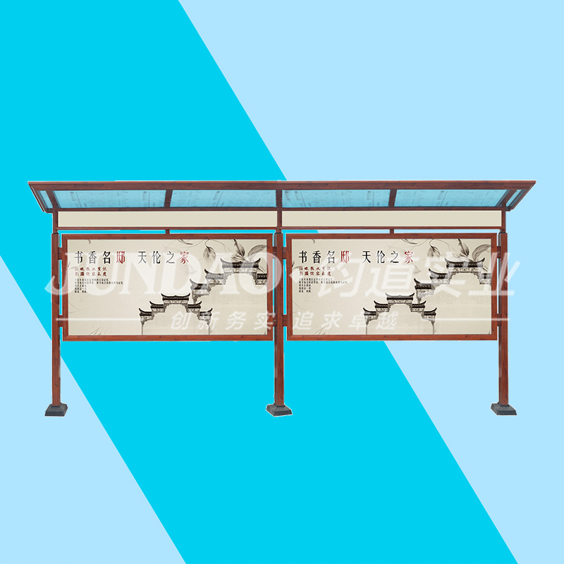 村委会设立的宣传栏以简约风格纯色调为主,铝合金宣传栏是选择最多的一种,其各个架构的材料内部都是空心设计,重量轻,铝合金的性能当然是不用说的,抗风性强,耐腐蚀,防生锈等。顶部更是安装PC阳光板减少紫外线对宣传栏的危害,该种宣传栏通常以埋地式安装,有的还会外加混凝土加固,所以村委会安装宣传栏的时候请您认准河南钧道实业生产厂家,我们将竭诚为您服务。