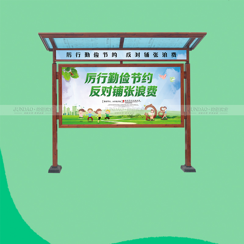 钧道实业有限公司主营;铝合金户外带雨棚宣传栏、垃圾分类亭,挂墙报栏、移动展架、开启式非开启式铝框、可折叠海报架、灯杆道旗、带造型灯杆灯箱、超薄灯箱、卡布拉布灯箱等成品。