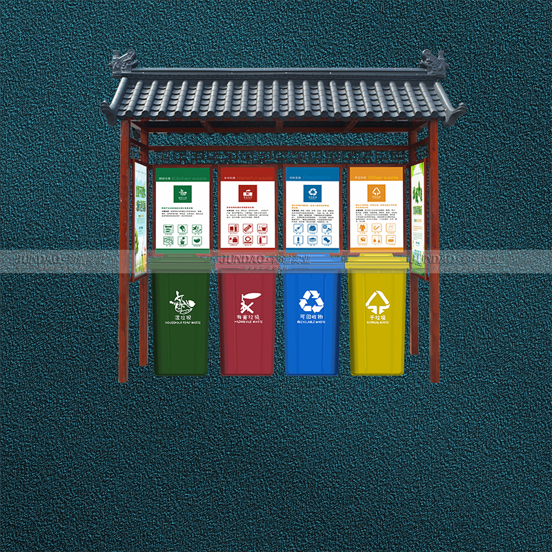 垃圾分类亭就是在源头将垃圾分类投放,并通过分类的清运和回收使之重新变成资源。垃圾中有些物质能转化为资源,如食品、草木和织物可以堆肥,生产有机肥料;垃圾焚烧可以发电、供热或制冷;砖瓦、灰土可以加工成建材等等。各种固体废弃物混合在一起是垃圾,分选开就是资源,充分挖掘回收生活垃圾中蕴含的资源潜力。垃圾及时进行分类,回收再利用是解决垃圾问题的好途径。动员社会参与。树立垃圾分类、人人有责的环保理念,开展多种形式的宣传教育,普及垃圾分类知识,引导公众从身边做起、从点滴做起。强化国民教育,着力提高全体学生的垃圾分类和资源环境意识。加快生活垃圾分类示范教育基地建设,开展垃圾分类收集专业知识和技能培训。建立垃圾分类督导员及志愿者队伍,引导公众分类投放。充分发挥资讯媒体的作用,报道垃圾分类工作实施情况和典型经验,形成良好社会舆论氛围。