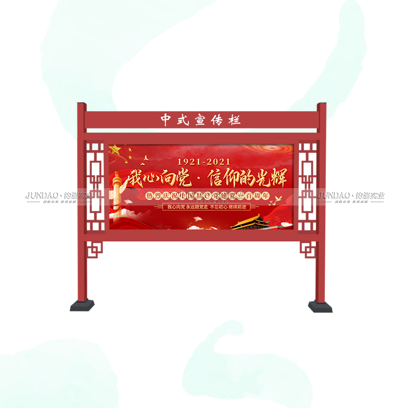 河南钧道实业有限公司主营:铝合金户外带雨棚宣传栏、垃圾分类亭,挂墙报栏、移动展架、广告铝框、可折叠海报架、灯杆道旗、带造型灯杆灯箱、党建标识牌、花草牌等成品。
