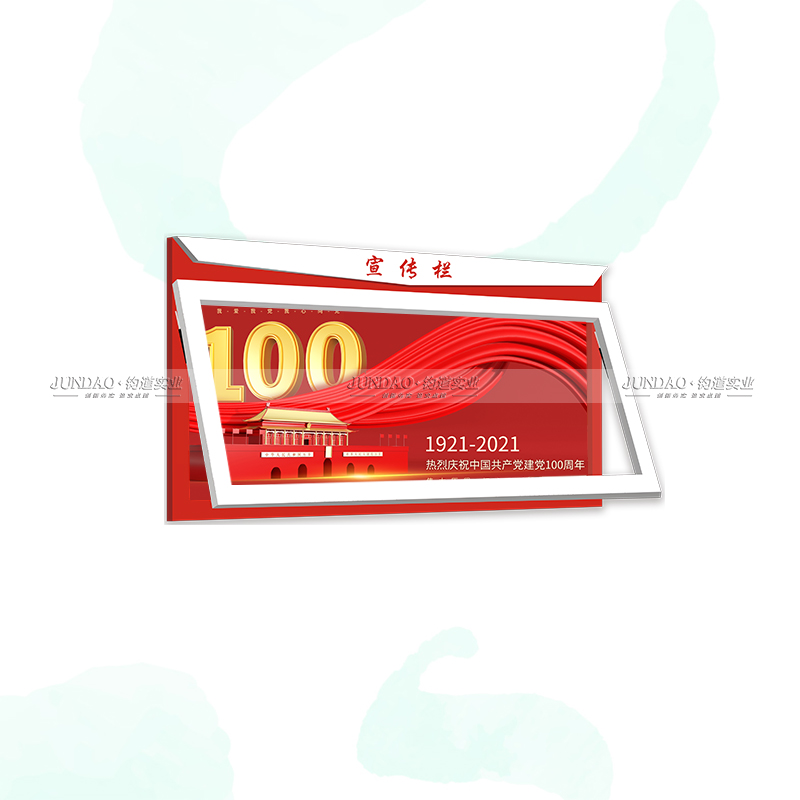 河南钧道实业有限公司主营:铝合金户外带雨棚宣传栏、垃圾分类亭,挂墙报栏、移动展架、广告铝框、可折叠海报架、灯杆道旗、带造型灯杆灯箱、党建标识牌、花草牌等成品。